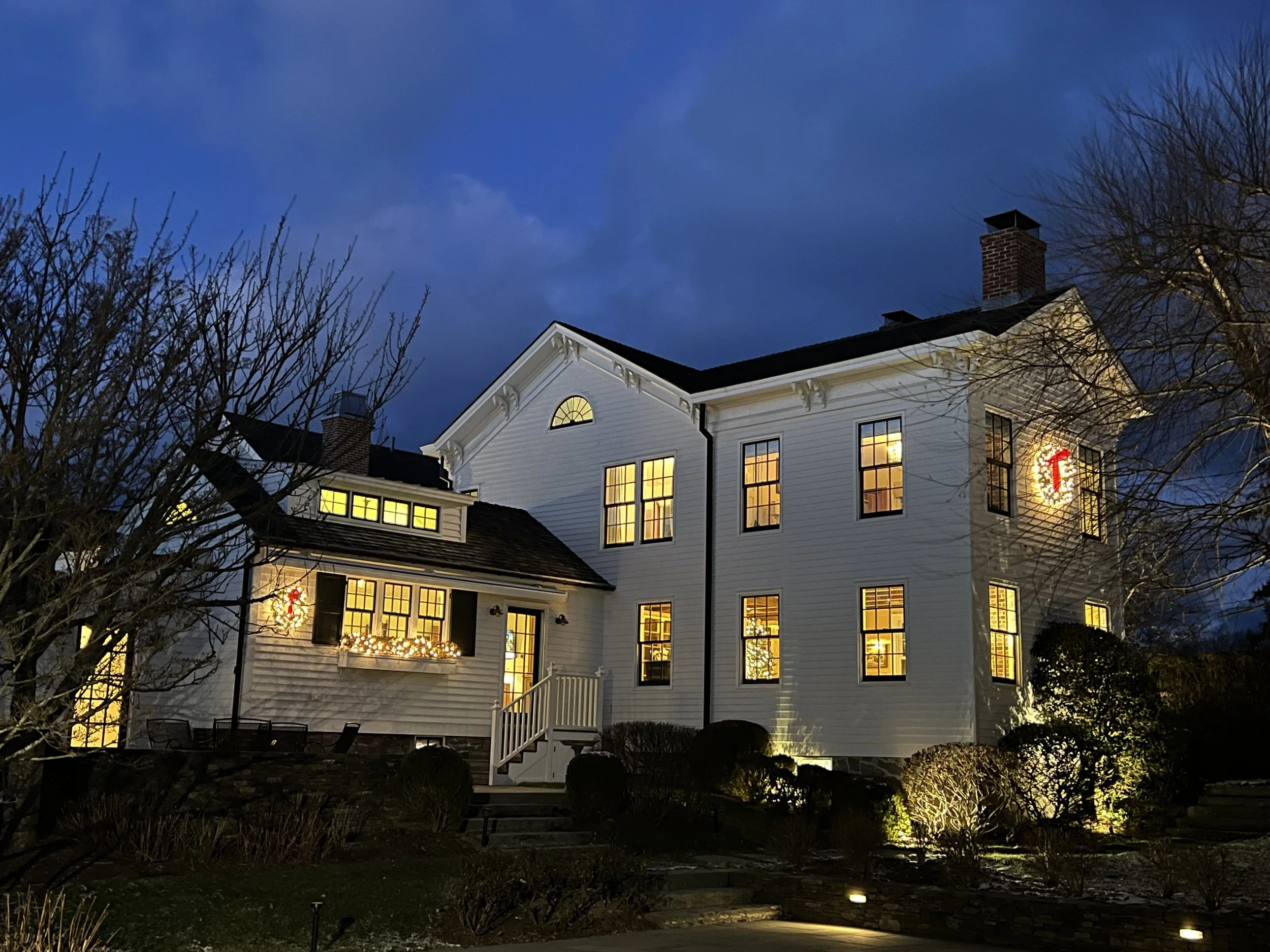 Upstairs, there are three bedrooms—two with working fireplaces—along with two baths (including one ensuite) and a media room. Generous built-in closets line the bedrooms and corridors. Fully restored and renovated in 2015, the home combines 19th-century charm with modern convenience: five zones of heating and cooling, all-new mechanical systems, monitored security, high-speed internet, Sonos audio throughout, layered lighting, and a whole-house automatic standby generator.